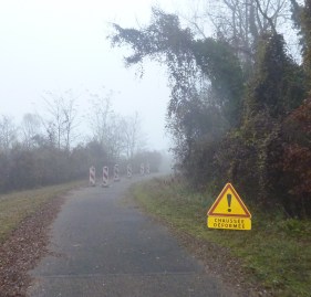 Les grands moyens pour nous prévenir que la piste du grand canal de Niffer est impraticable par endroits.