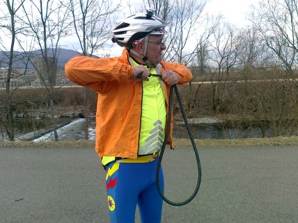 A Cernay, la roue arrière est à plat. Ma première crevaison de l’année.