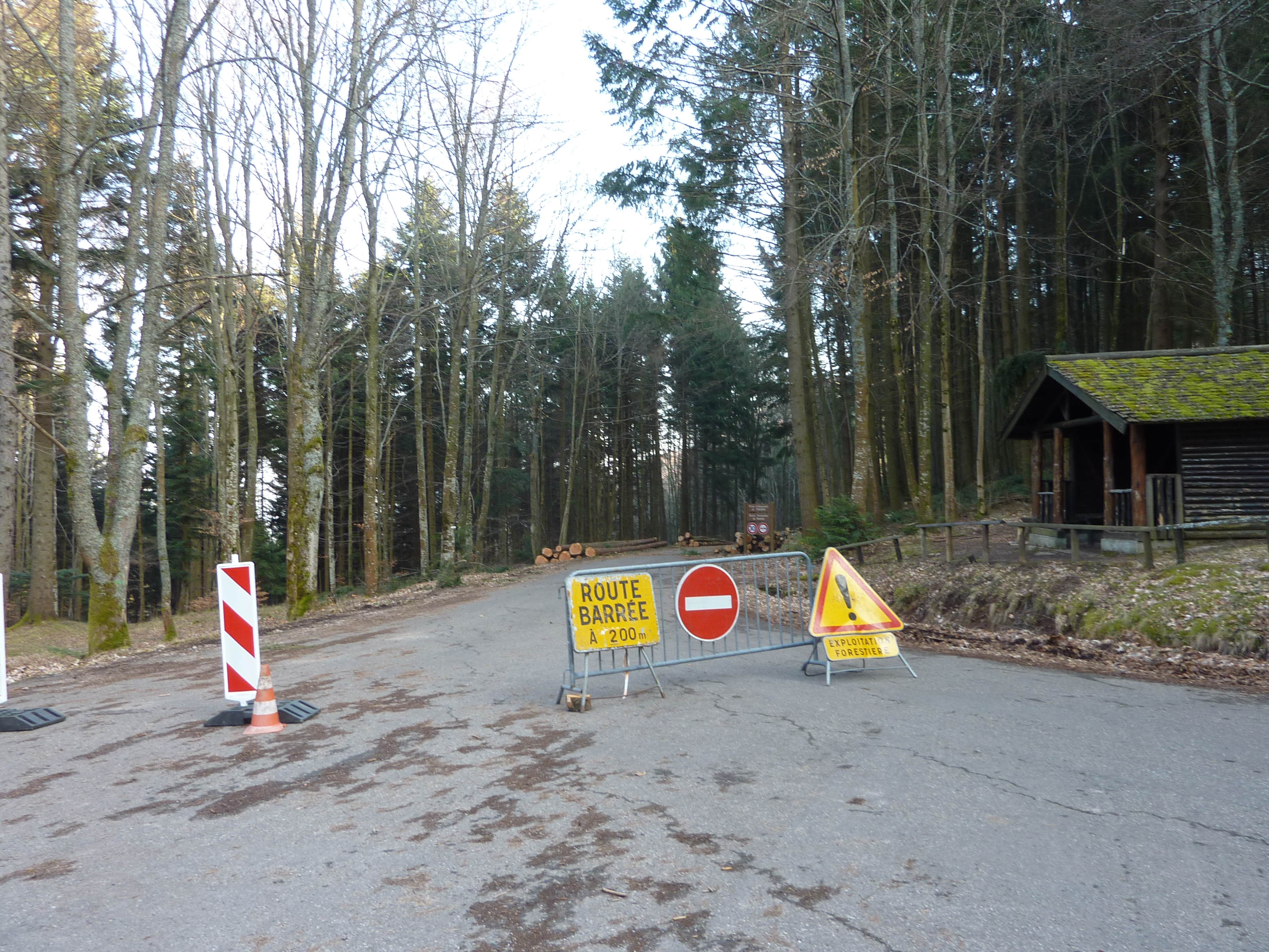 Mince alors, la descente de Thann est en travaux forestier, le sol couvert de bois…