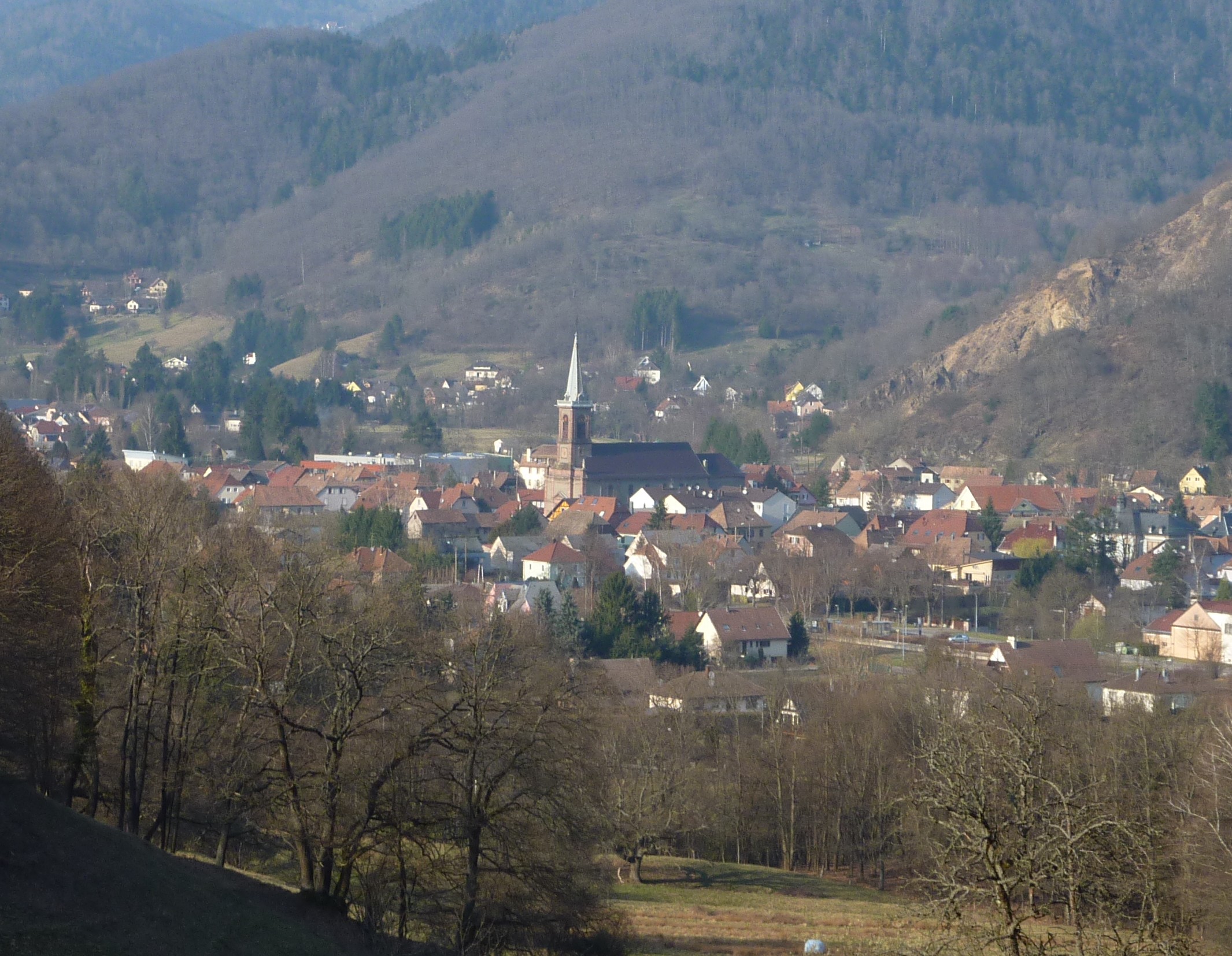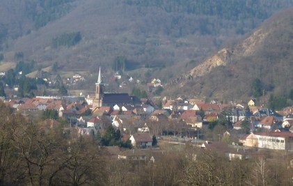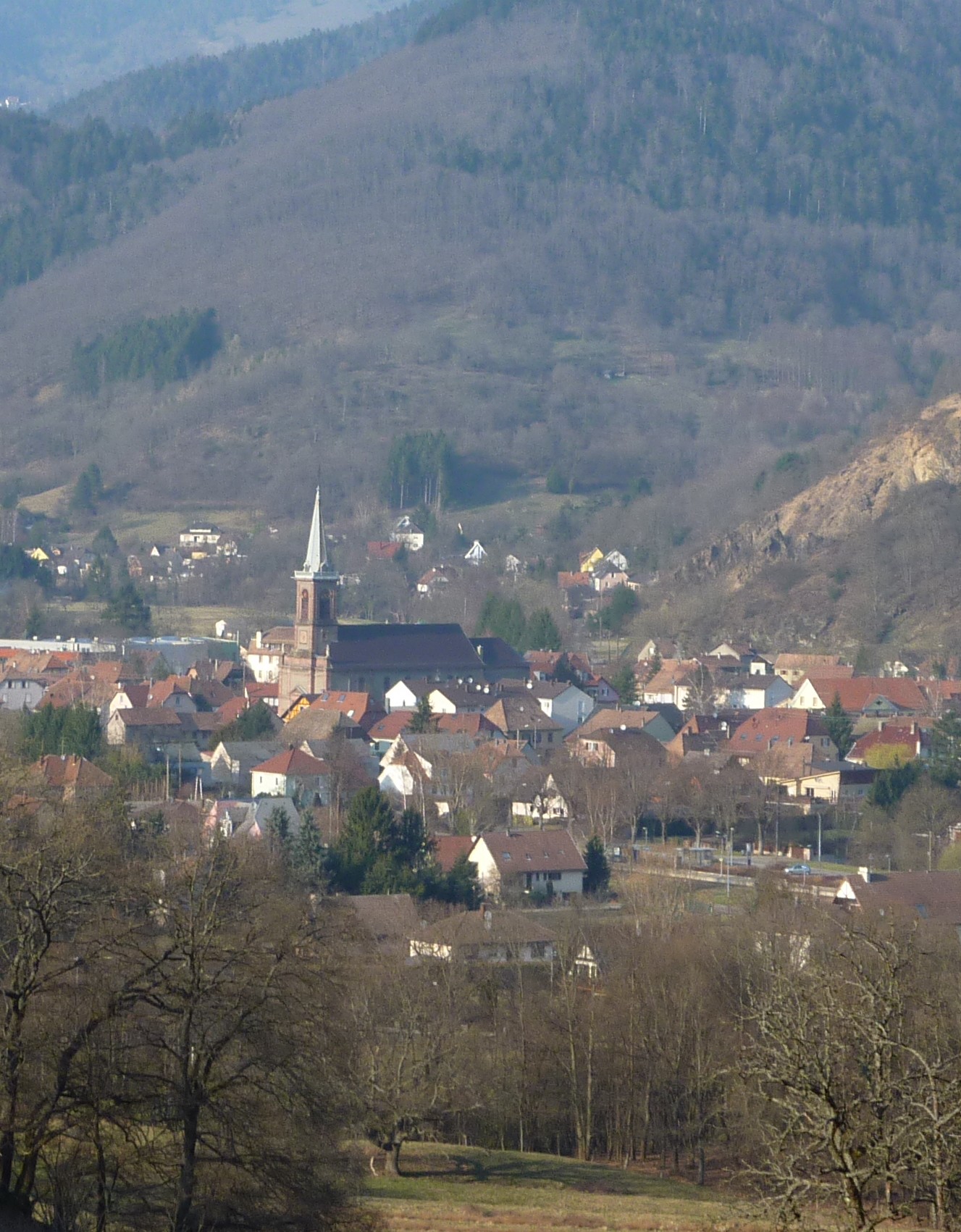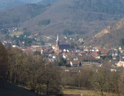 Entre les arbres des vergers, j’ai pris ma photo de Bitschwiller.