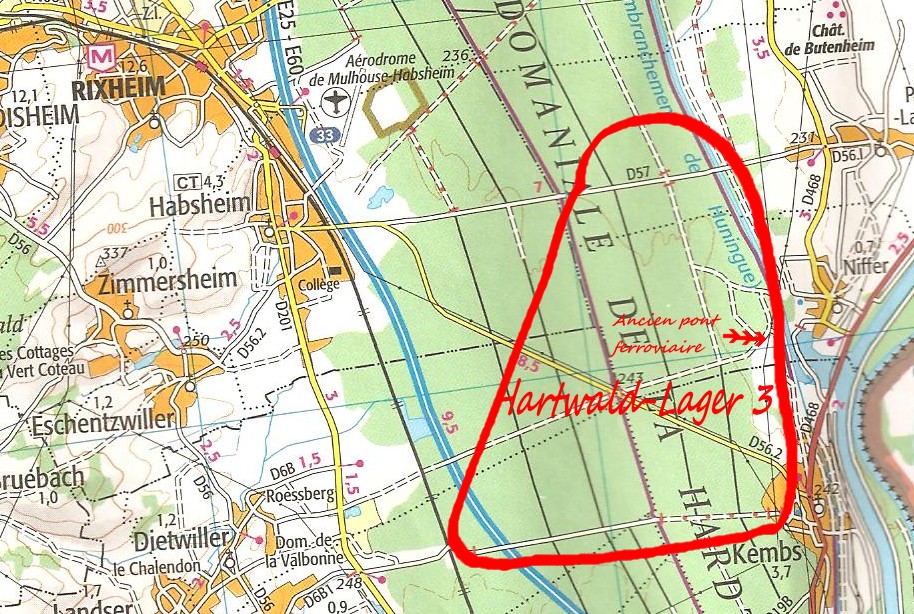 C’est à l’emplacement du Harthwald-Lager numéro 3 que j’ai trouvé les vestiges d’un pont ferroviaire, non loin de la passerelle de Niffer.