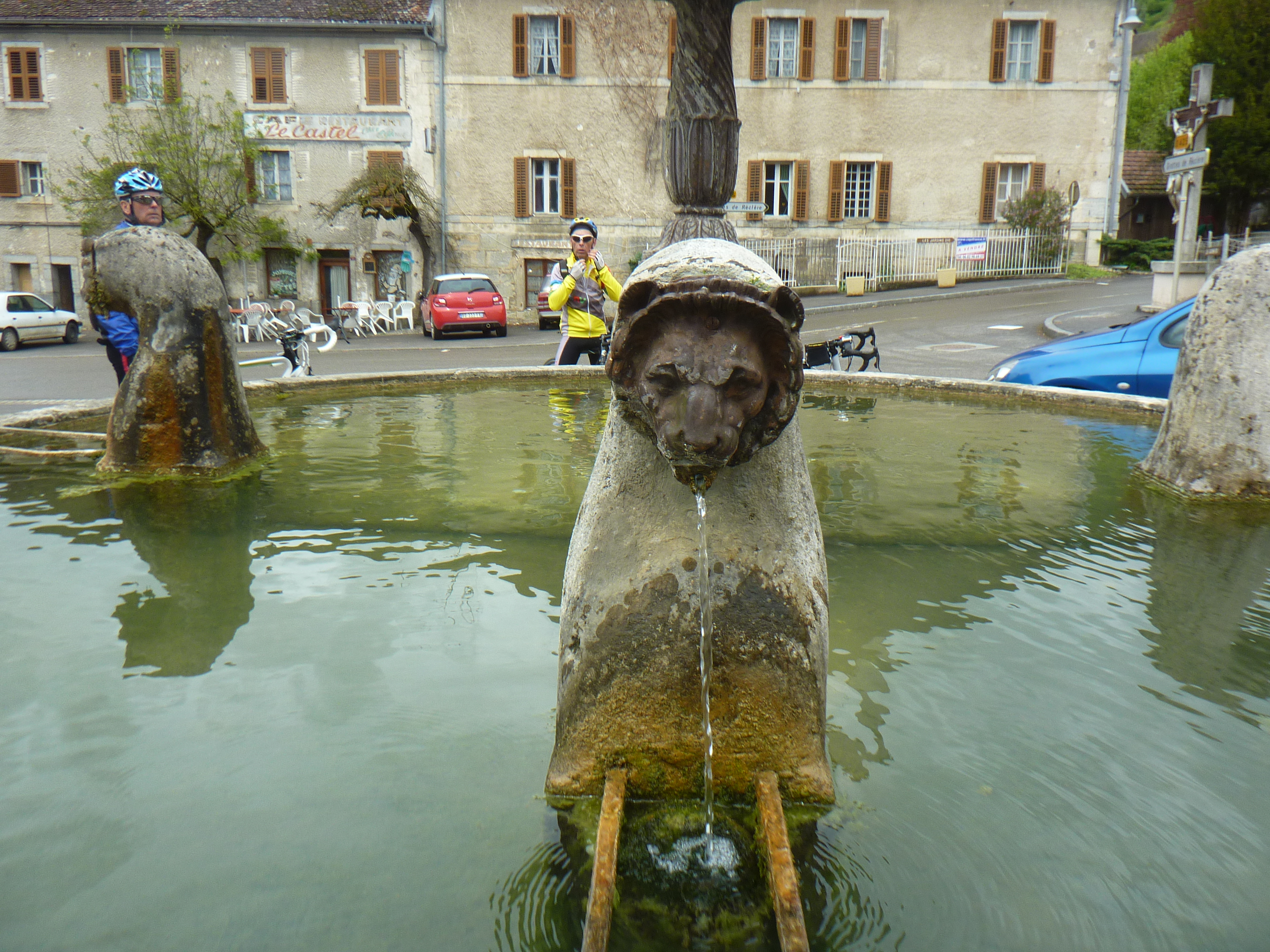 …puis la vallée du Doubs toujours magnifique dès la descente vers Vaufrey et sa fontaine aux lions étonnante…