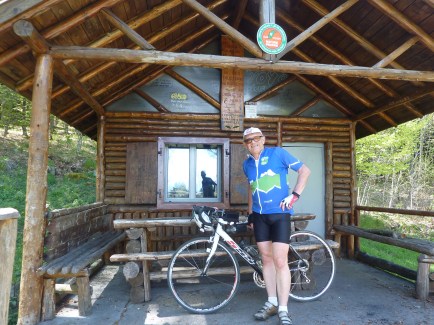 A Rimbach, je monterai jusqu’au col de Munsteraeckerle (655m)…on pousse le vélo 6mn dans un sentier étroit qui monte en méandres sur 500m…