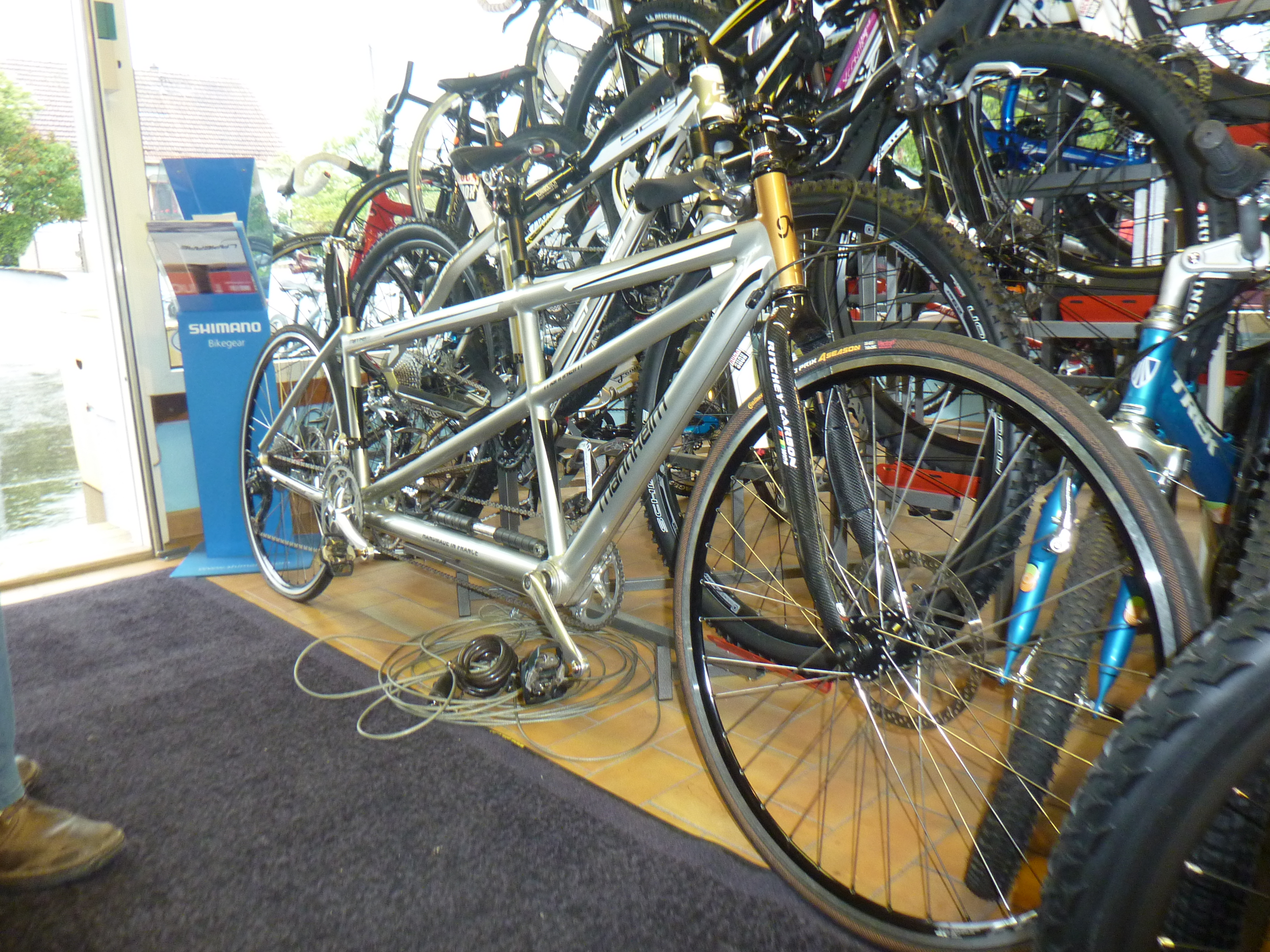 Une pause chez notre vélociste Mannheim à Vieux-Thann, juste le temps de déposer une mare dans le magasin et on repart.