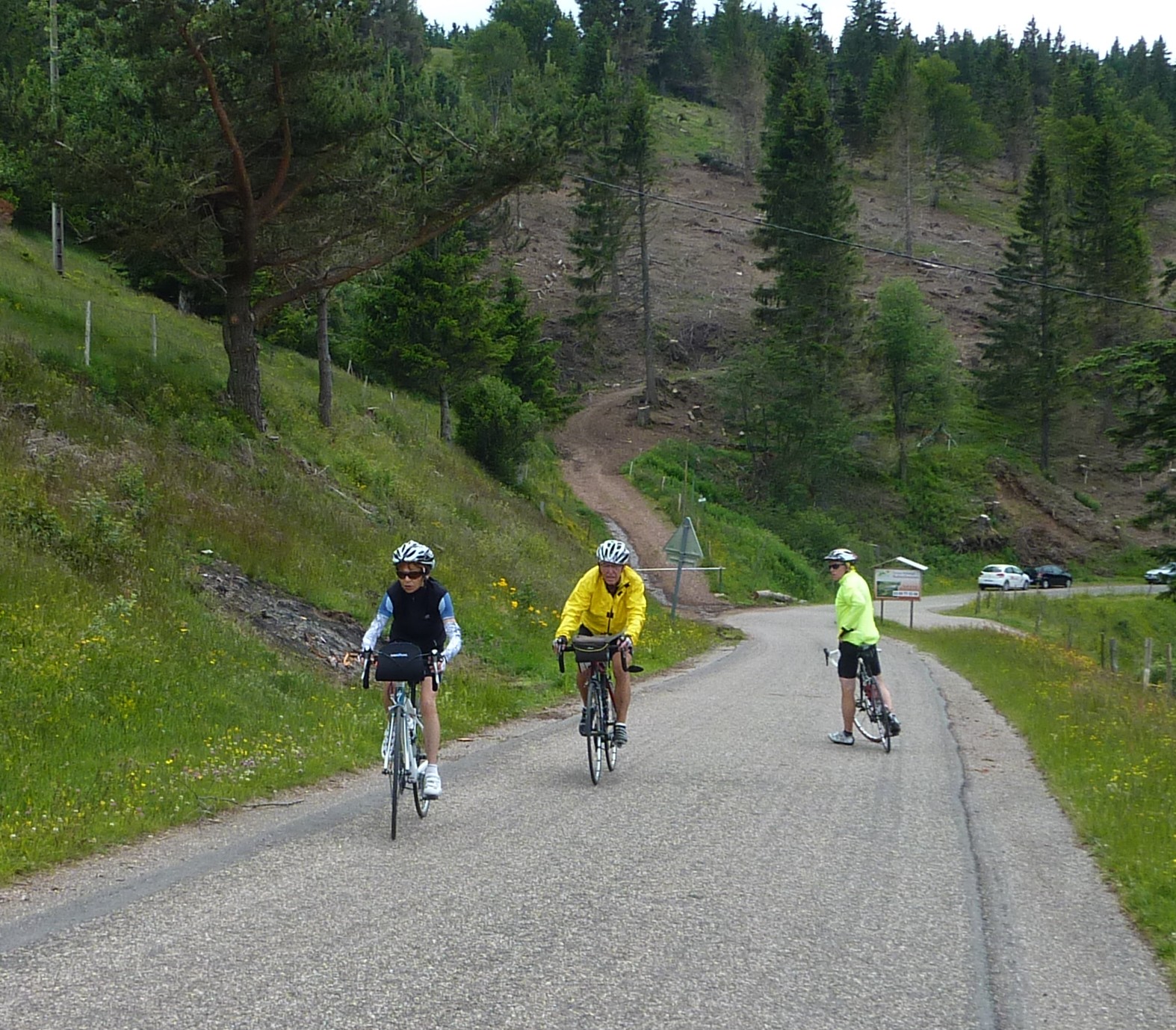 Si le BRV de Colmar a les faveurs des « régionaux » aguerris à la montagne vosgienne et aux ballons, d’autres découvrent parfois pour la première fois les joies – et les émois- des longues pentes…comme ce groupe de cyclistes venus des Flandres tâter le goudron chaud du Petit Ballon…