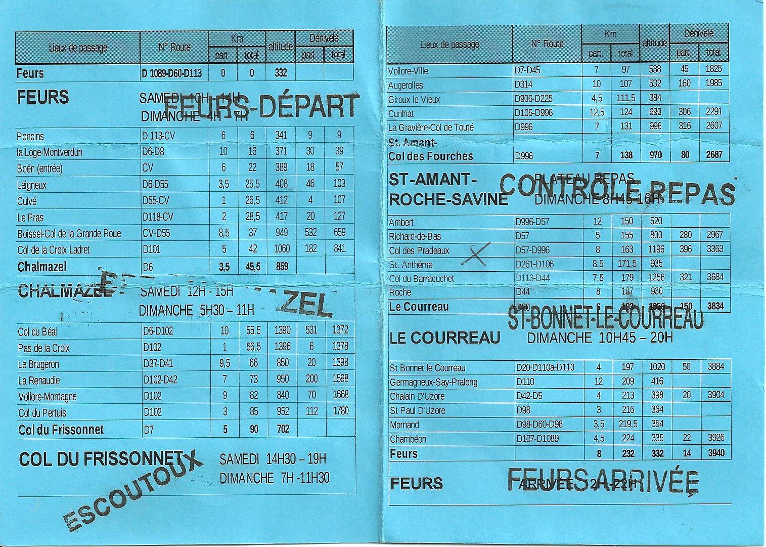 Carton bleu pour les « touristes », rouge pour les « randonneurs et vert pour les participants à la Forézienne.