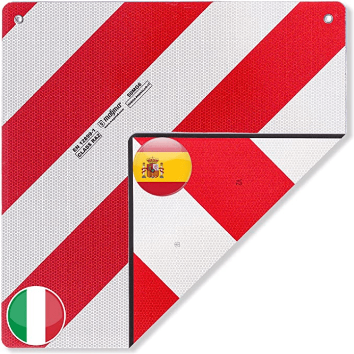 Dans le reste de l’Europe, ce panneau V20 n’est obligatoire que si le chargement dépasse de plus d’un mètre.