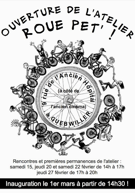Il est installé au 9, rue de l’Ancien Hôpital, à Guebwiller, juste à coté de l’ancien cinéma. Continuer à lire … « L’atelier Roue Pèt’ ouvre ses portes à Guebwiller »