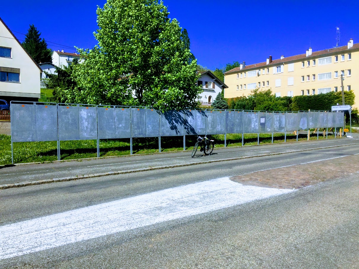 Puis nos amis du CADRes Thur-Doller arrivent un à un sur leurs draisiennes. Je me sens mieux représenté. On parcourt les allées dans les odeurs de poulets, d’ail des ours et de munster fermier. « ne laissez pas Macron décider à votre place ». Mon président commence à s’engueuler avec la France Insoumise, « c’est l’Europe, c’est pas Macron! » Bon après, on va sympathiser avec la Croix Rouge qui collecte des fonds.
