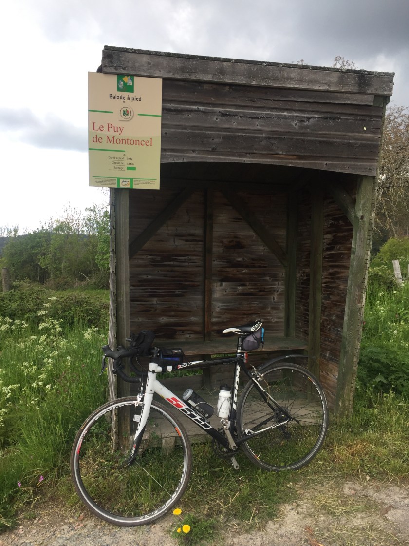 Je n’avais pas prévu que le col des Planchettes et celui de la Charme au-dessus de 1000m m’en ferait baver autant. J’ai fait du cyclo-cross autour du Puy de Montancel pendant bien 10km. La plupart à pied dans des dédales de cailloux.