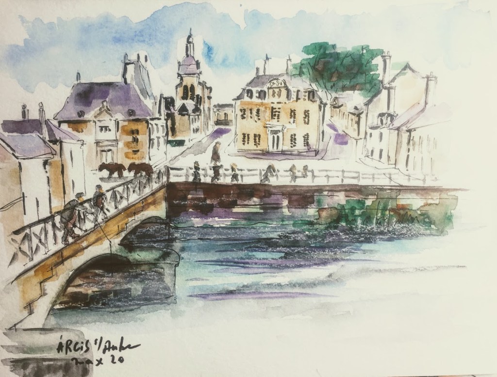 J’ai vécu là pendant quelques années. A l’aide de cartes postales noir et blanc, je revisite les lieux et j’imagine les couleurs. En fait les pierres sont blanches là-bas. Un calcaire crayeux. Je ne respecte donc pas la vérité historique.