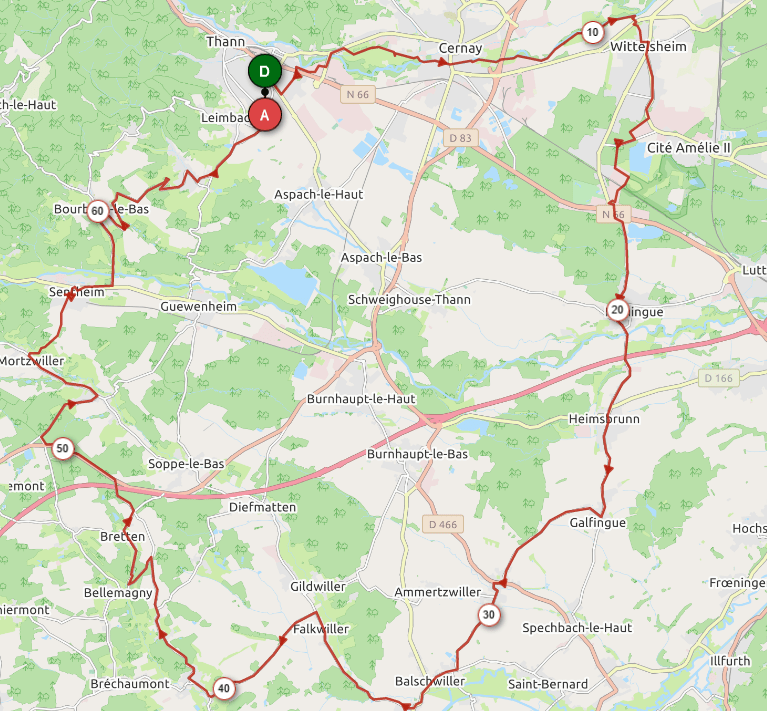 Je rentre en douce par Sentheim et Bourbach sans me faire voir afin d’éviter la pluie.