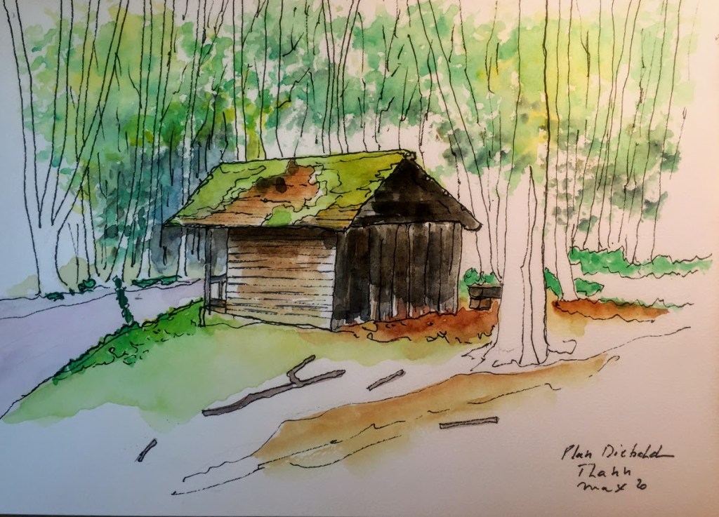 La mousse envahit la toiture. Personne ne semble plus entretenir cet abri. La mousse est jolie, elle ne me dérange pas.