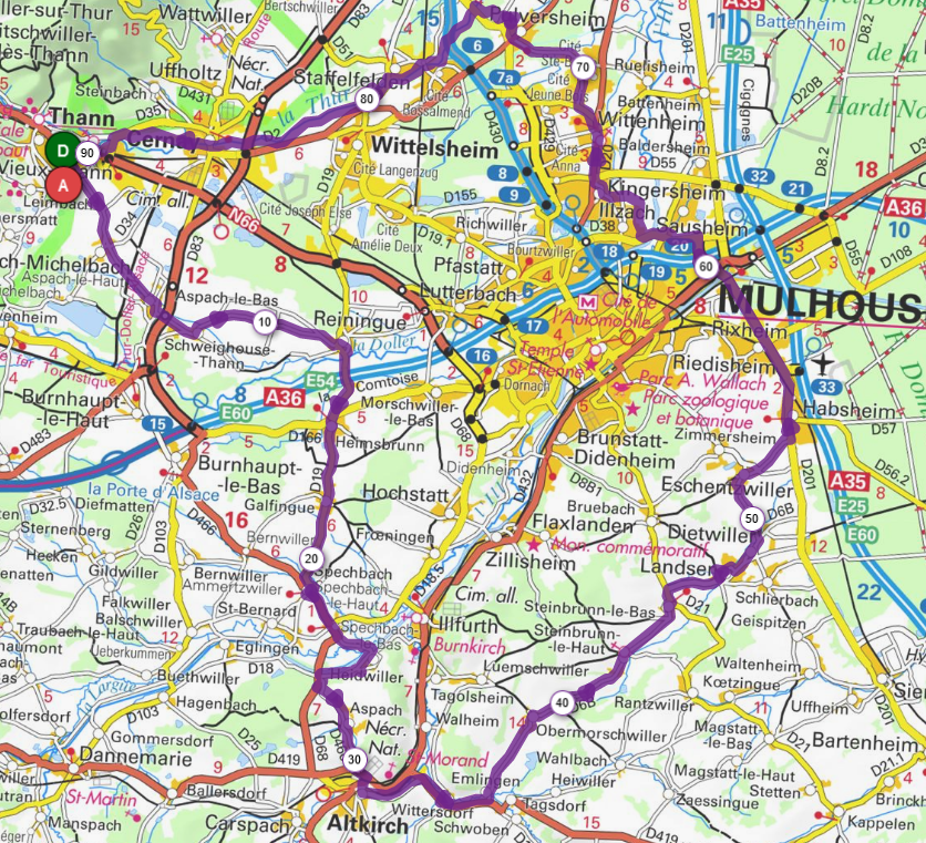 Galère pour le retour, j’ai tangenté la capitale. D’Habsheim à Pulversheim, une complexité qui subsiste depuis vingt ans. Des encombrements inextricables, la rue de l’Ile Napoleon à Rixheim: trottoir, route, trottoir, route,…, la traversée de l’Ile Napoléon, d’Illzach, de Wittenheim, un bazar dont je n’avais plus idée. On oublie vite! J’ai bien fait d’en partir.