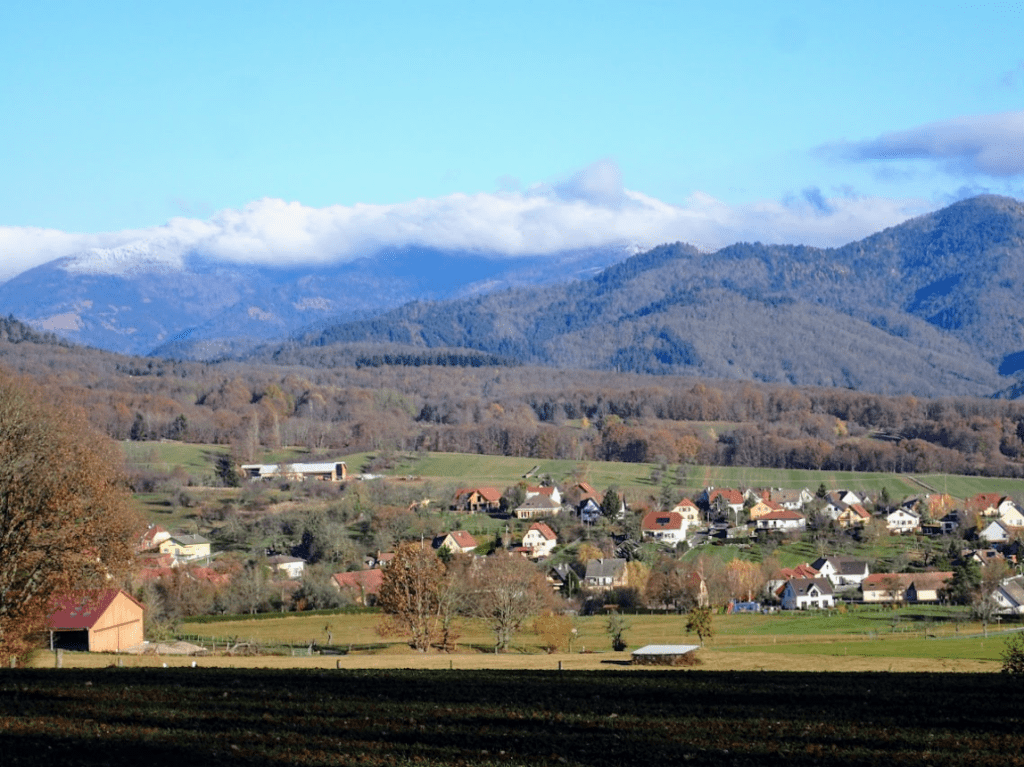Le rue des Près ne me fait rien gagner. Je dois prendre le Hohacker par la route, ce n’est pas facile mais j’ai le vent qui m’aide. Je traverse le bois jusqu’à Stockacker à l’entrée de Michelbach. C’est couvert de feuilles dans la descente et donc piégeux car en-dessous il y a les ornières. Mais que ce parcours est beau!