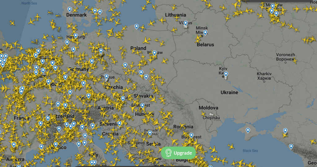 Le trafic aérien évite soigneusement l’Ukraine ce matin (24/02/2022)