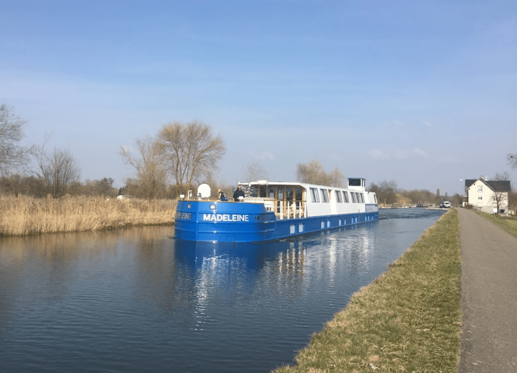 Le MS Madeleine est une superbe péniche 5 ancres à dimension humaine, mesurant 38,50 mètres de long et 5,07 mètres de large. Elle peut accueillir 22 passagers, dans 11 cabines disposées sur deux ponts. Chacune d’entre elles, d’une superficie variant de 8 m2 (plus une cabine PMR de 11 m2), dispose de toutes les commodités et offre les meilleures conditions de séjour. À bord, tout est soigné dans les moindres détails et les 5 membres d’équipage garantissent un service personnalisé. (voir plus ici)
