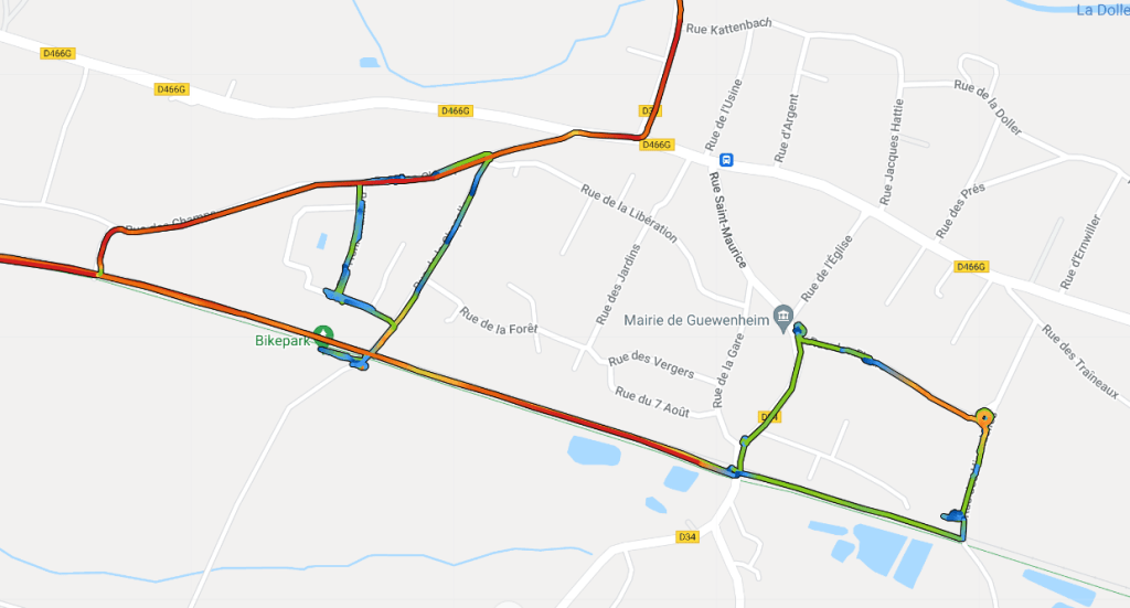 Puis je suis rentré par la piste de la Doller. Les rafales de vent m’empêchaient de profiter de la pente, il fallait encore pédaler.