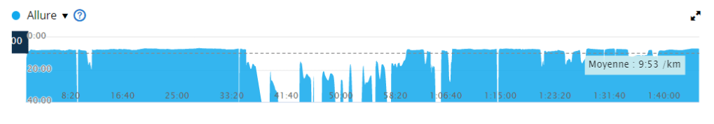 Je n’ai pas affiché le cardio pendant toute l’heure, le seul moyen de ne pas me faire peur (avec 150 pls de moyenne à l’arrivée)