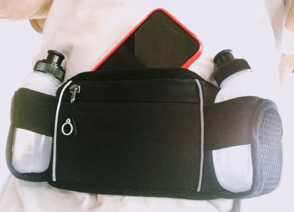 Cinq kilomètres sans boire, je sais faire. Mais avec dix kilomètres, il me faut boire. J’ai donc ajouté à mon maigre bagage un Running Belt, en français une ceinture de course, avec two drink bottles soit deux micro-gourdes de 170ml. Le sport sans connaître l’anglais, impossible. Surtout si on veut être finisher