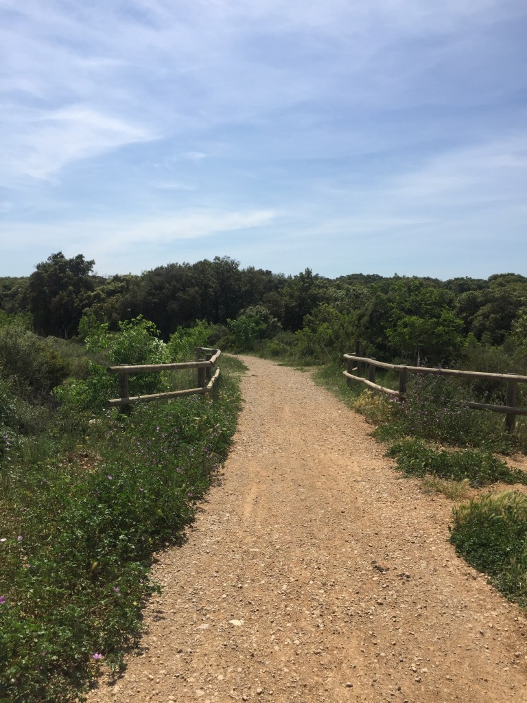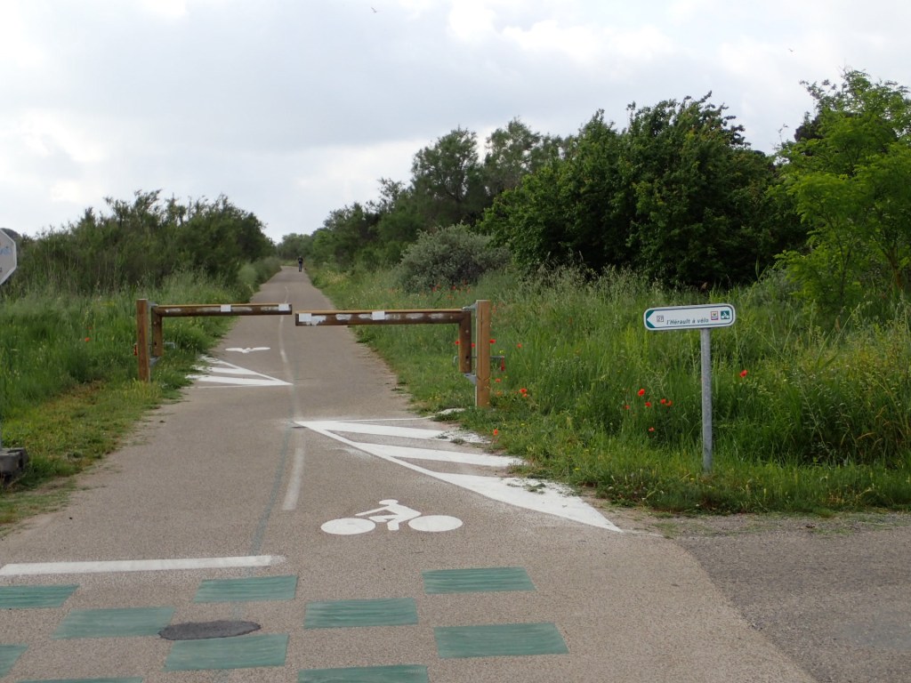 je vais rarement au bord de la mer. Aujourd’hui je cherche à ne pas emprunter la piste qui mène de Montpellier à Palavas. Fatalement je trouve de bons plans et des moins bons. Surtout lorsqu’il faut franchir ces corridors TGV et autoroutiers qui interdisent tout parcours bucolique. J’arrive enfin à mes fins.
