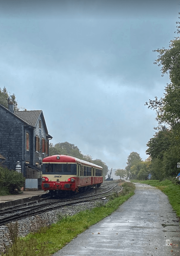 Trois TER et un bus pour rejoindre la montagne à Modane pour l’un et un TGV pour l’autre. 7 kg de CO2. On ne peut pas se priver de tout non plus. On ne sait pas comment ont voyagé les vélos?…si on le sait au retour: « mon gravel se balance contre la vitre du TER qui me ramène en Auvergne, suspendu à son crochet comme à un croc de boucher« .