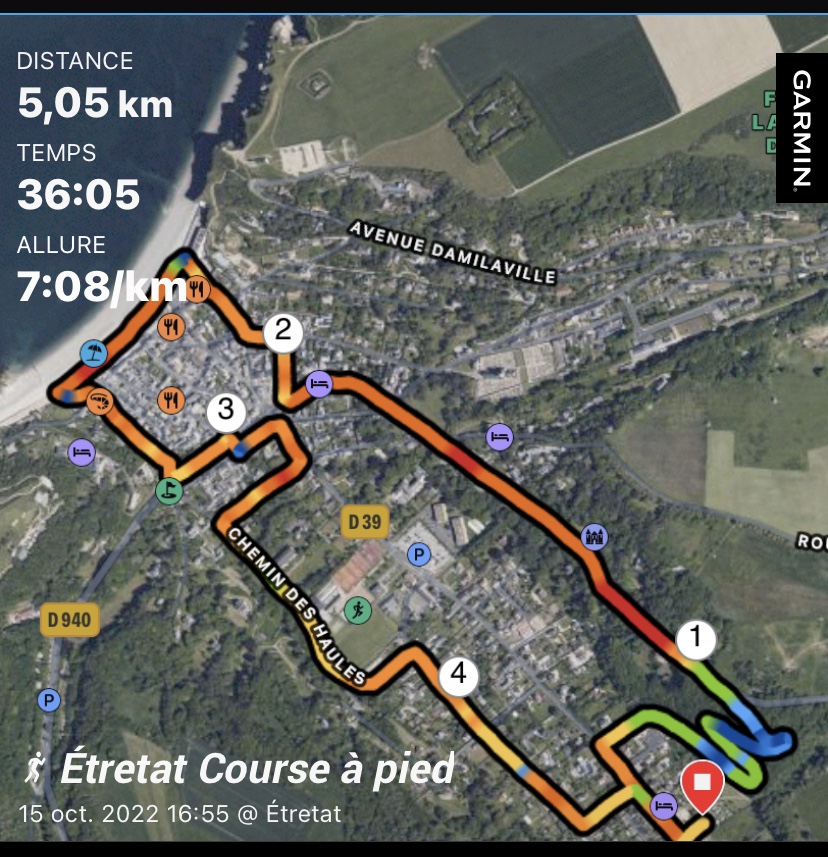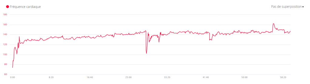 J’ai un peu les jambes en compote. Mais c’était jouable avec un km à 7’08 » et un cardio de 138.