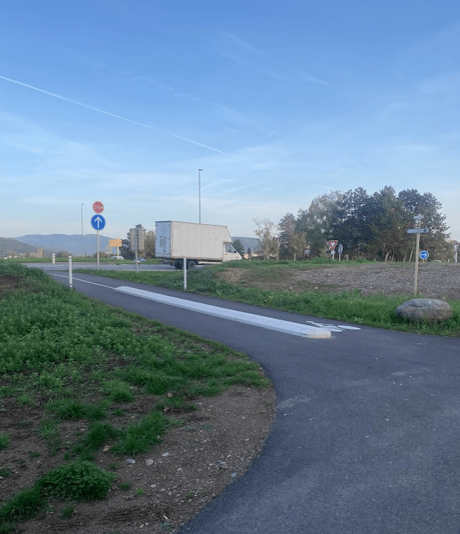 D’abord la ZI d’Aspach quasi déserte en ce lundi de Toussaint, puis Aspach par la piste cyclable, je grimpe vers Roderen, puis je retourne à la piste cyclable de la rue du Traîneau en traversant un chemin herbeux qui me trempe les pieds et les chaussettes.