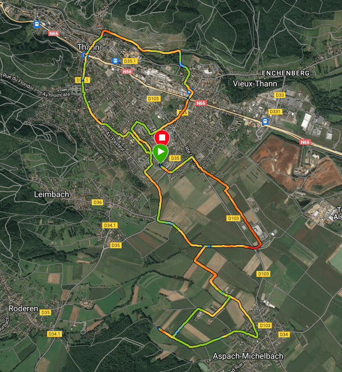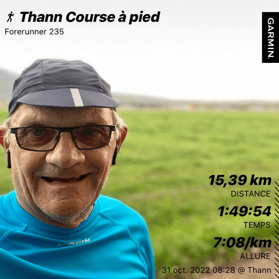 Revenu à Thann, j’ai mes dix premiers kilomètres; je fais mon tour de ville habituel soit cinq kilomètres qui feront quinze au total.