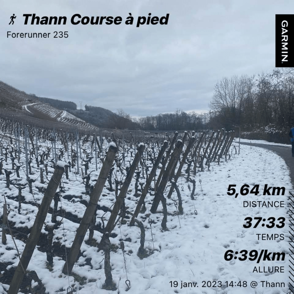 Un vent léger supportable mais avec moins un degrés j’ai vite compris mes limites. Pieds et mains ont du mal à résister. J’avais tout de même deux bosses sur le parcours, celle de Soppe et celle de Guewenheim soit 200m au total.