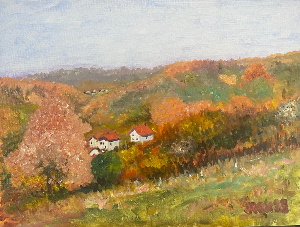 Le tour habituel qui me va bien, aller jusqu’au centre du bourg et revenir en alternant chaussée et trottoirs troués. J’ai la hantise de me tordre une cheville en courant, ou mieux, de m’étaler en sautant les trottoirs.