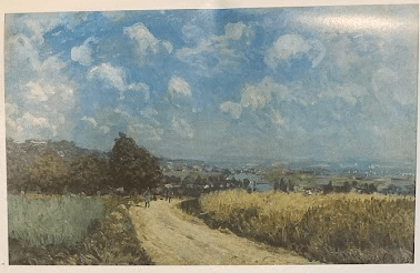 Une lumière ferme baigne la campagne sous un de ces ciels d’été dont Sisley écrivait à Tavernier qu’il n’est pas un fond lointain et insignifiant, mais qu’il contribue aussi à donner ses plans- car il a des plans, comme le terrain- la profondeur et le mouvement