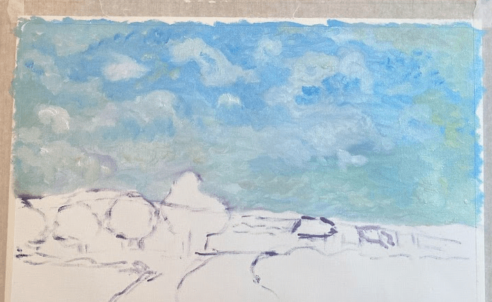 J’ai utilisé un medium de ma fabrication soit 1/2 solvant (white-spirit) 1/2 huile de lin, quelques gouttes de siccatif Onyx ( Leclerc-Brico).