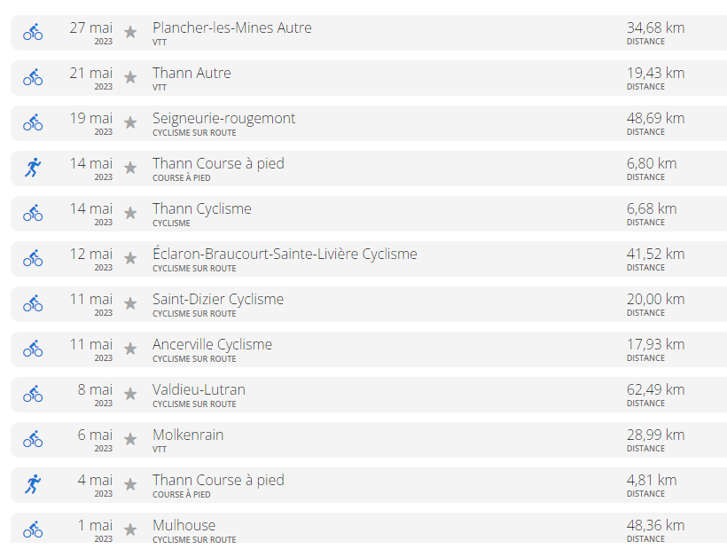 Un parcours qui emprunte dans sa première moitié jusqu’à Staufen des bosses parfois redoutables dont j’ai le secret. Pour le retour, je me calme en restant sur du plat. Je rentre fissa pour ne pas manquer ma sieste et fuir la chaleur qui s’annonce.