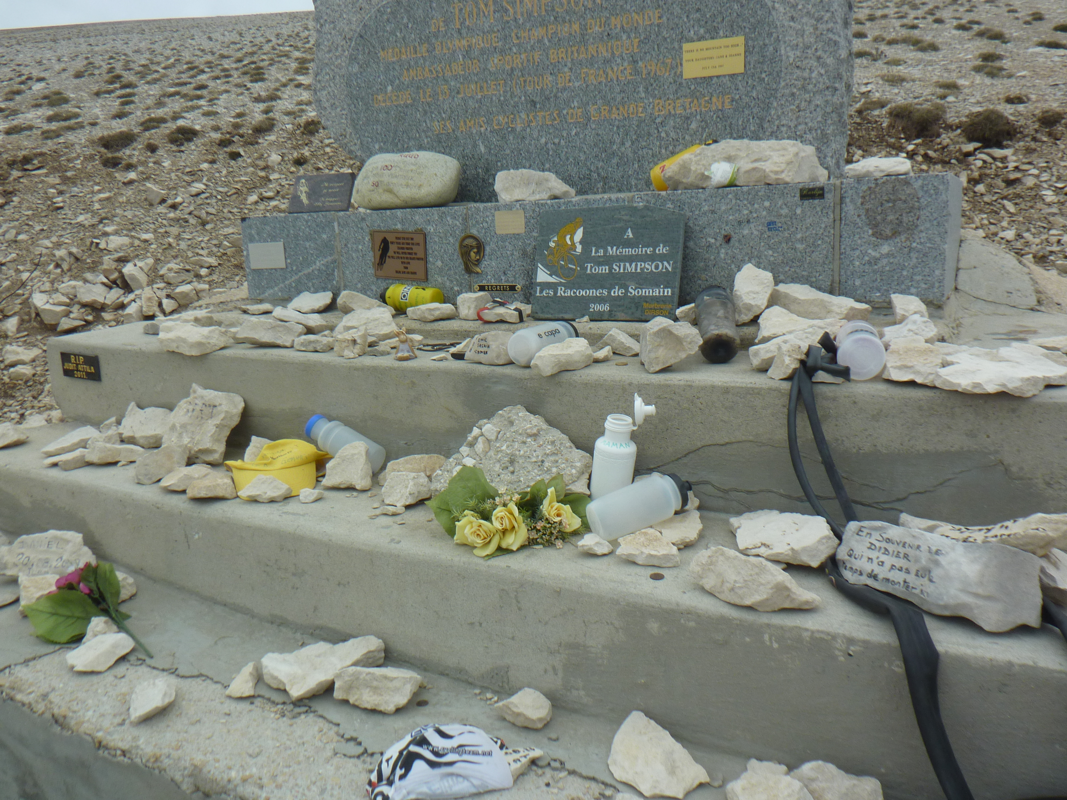 la stèle de Tom Simpson dans le Ventoux (vélomaxou)