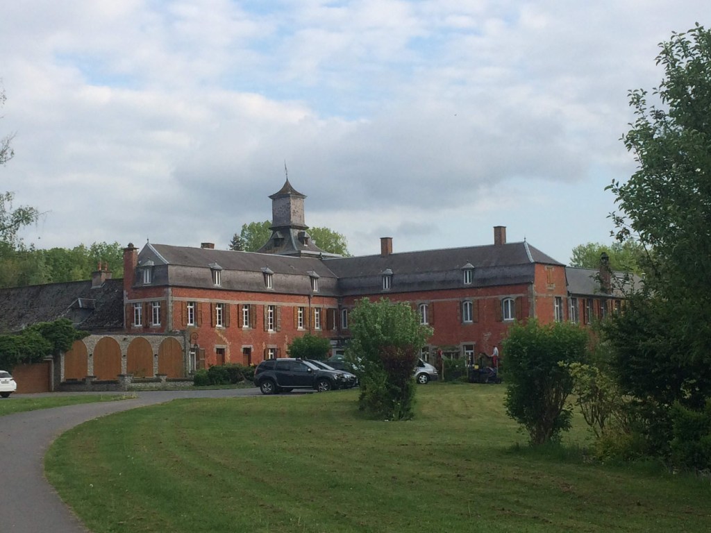 En 2018 « Valjoly ». L’hôtel-restaurant, c’est la formule riche du voyage à vélo, on peut même retrouver son linge lavé et repassé le matin du départ. A Arlon, j’ai été autorisé à monter mon vélo dans la chambre en empruntant l’ascenseur. Dormir avec son vélo, une jouissance!Arriver ruisselant avec son vélo parmi les limousines comme ici à Liessies, c’est parfois intimidant. Le resto gastronomique en claquettes, c’est pas top! (2018)