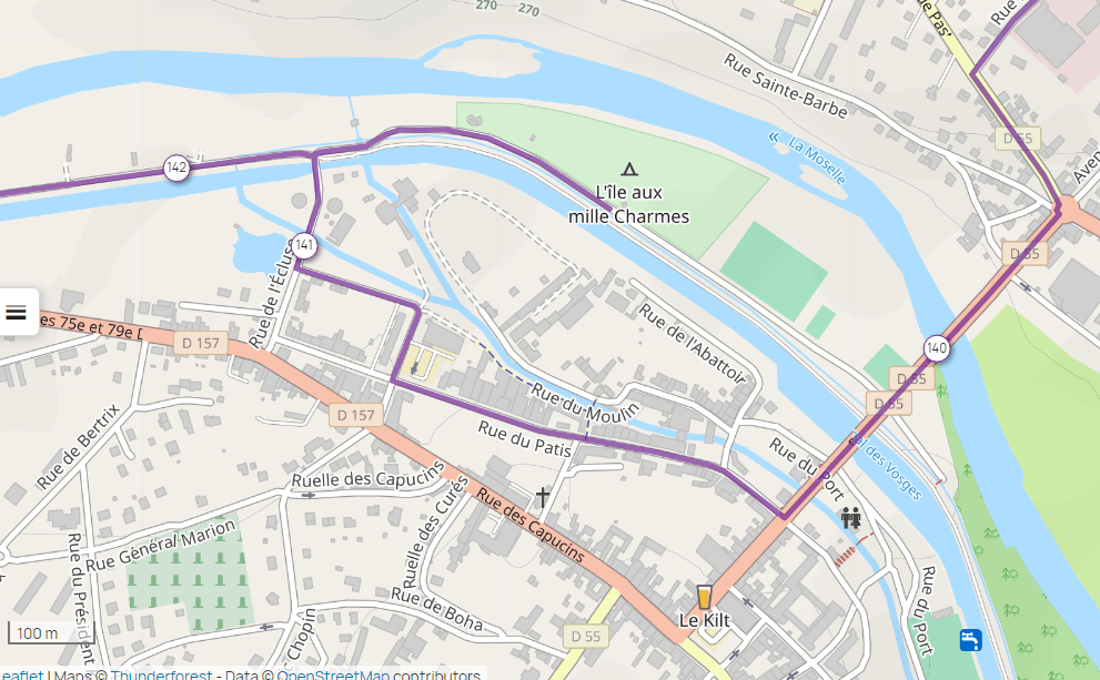 la précision du traceur comme ici à Charmes vous conduit jusque devant l’entrée du camping sans devoir se perdre dans la localité