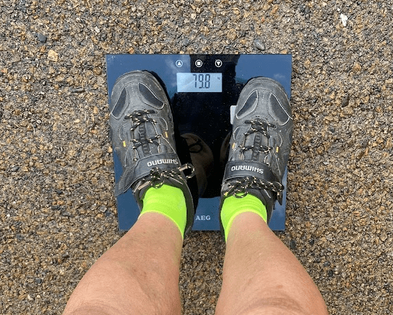 Ce matin habillé en tenue de cycliste avec mon casque, je suis à 79.8 kg. J’ai donc un léger handicap par rapport à l’année passée.