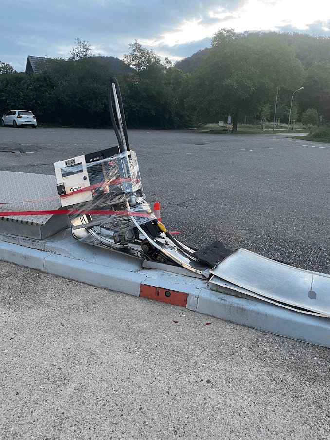 Je n’ai pas vu un rétrécissement de la chaussée et je me suis pris de plein fouet l’aménagement en béton .