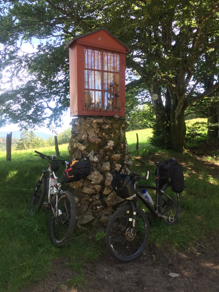 J’ai repris mon étude. Il s’agit de voyager avec un bagage léger (sac à dos/bikepacking) tout en faisant des haltes en auberge ça et là. Pique-nique à midi.