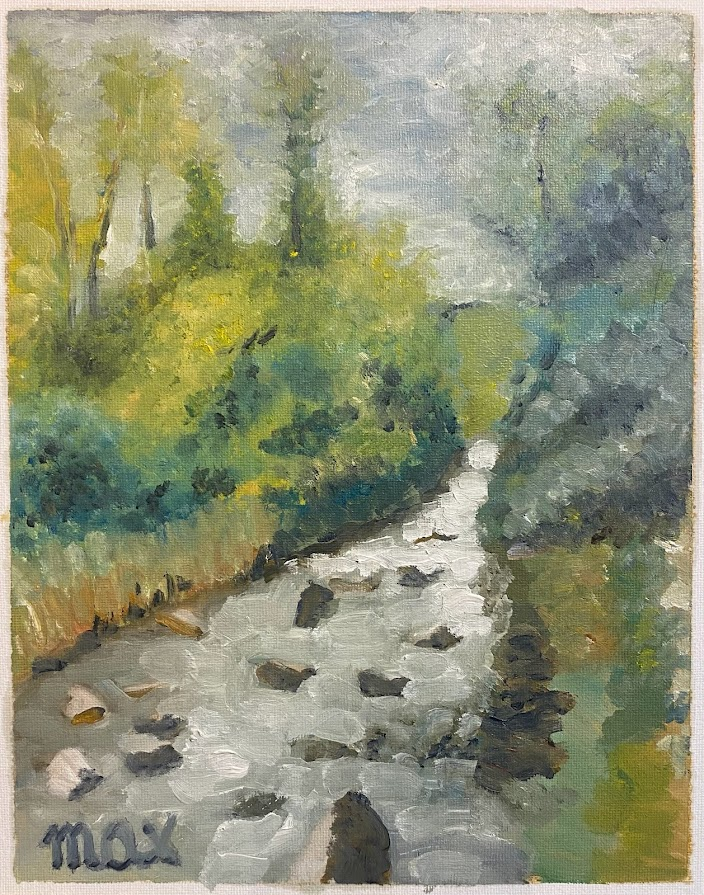 J’ai galéré avec cette peinture qui comporte de nombreux pièges de perspectives fuyantes et aussi avec les tons de la pierre. Finalement je l’abandonne en l’état mesurant ainsi tout le chemin qui me reste à parcourir pour rendre mon sujet attractif.