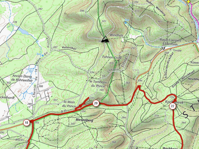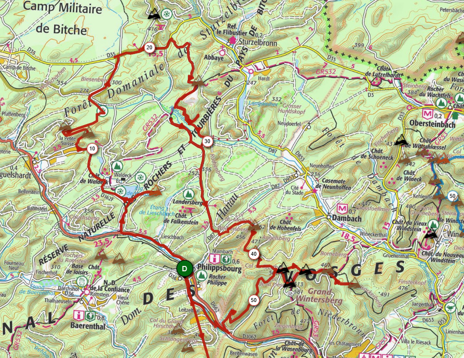 Philippsbourg 2eme journée 56km/1500mJ’ai compris pourquoi je n’ai pu atteindre ce col Windhals. Il est au coeur du camp militaire de Bitche.Ma tentative d’incursion au km 20 a été compromise par le son du canon.