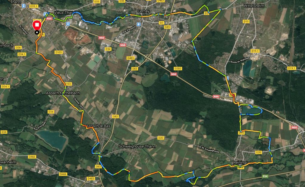 Il se trouve que je ne vais plus par là depuis que j’ai quitté Mulhouse. J’y suis retourné néanmoins en avril 2022 (voir ci-dessous « Presque vrai ») depuis Thann mais j’avais 125 km au compteur. C’est trop pour moi à présent. Je ne me permets ces distances qu’à cyclo-camping.