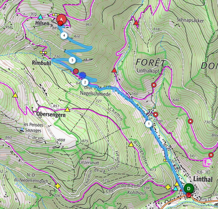 Toujours à Linthal, face à l’église prendre à gauche la célèbre montée du Remspach 4.42km/410m tout aussi difficile.