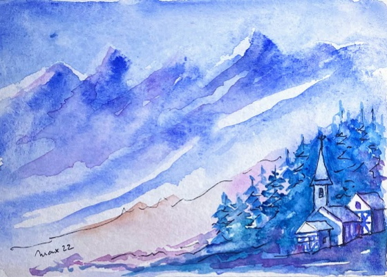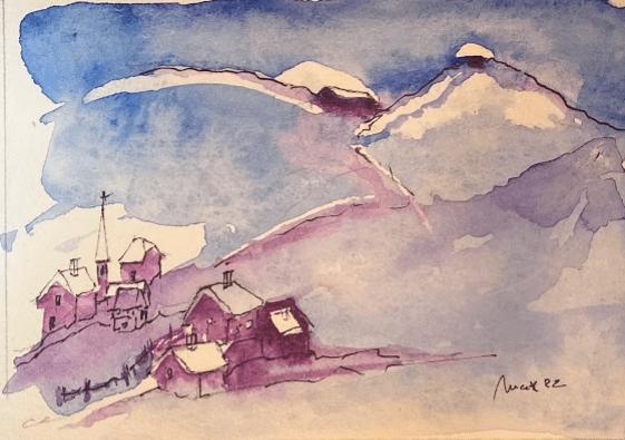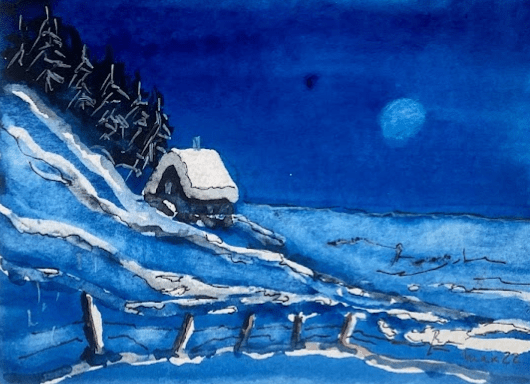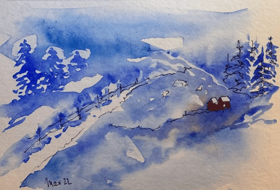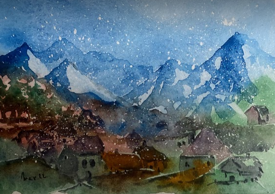 Tous ces travaux sont imaginés. Ce sont donc des œuvres de fiction. Souvent je commence avec de l’eau, puis de la couleur. Parfois la neige en réservation sur la page blanche.