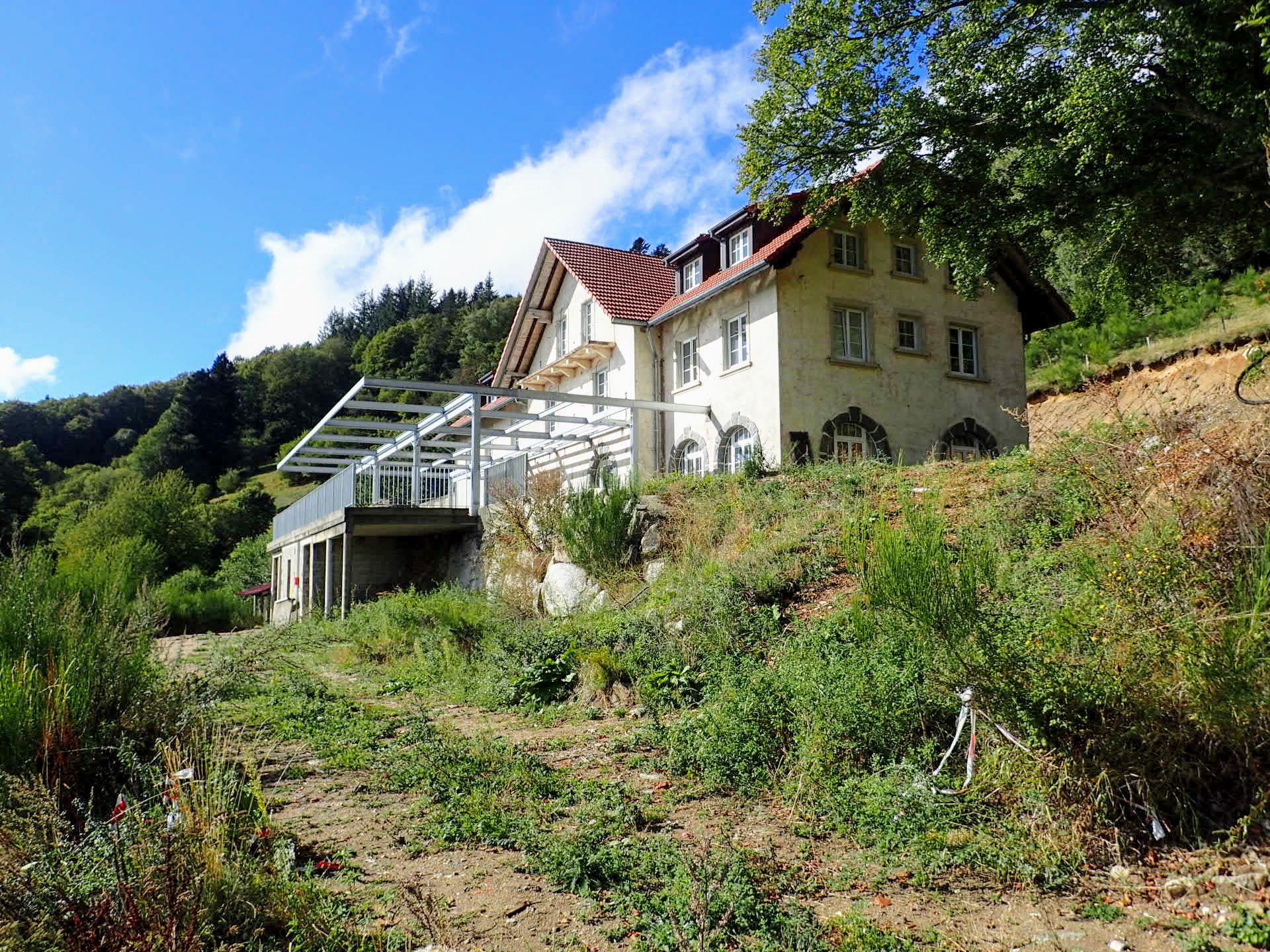 Comme j’ai vu que l’ancienne colo de la Goldenmatt a été restaurée en maison de vacances, je grimpe par là. Par le hameau Aloyse Merklin, puis j’arrive au nouveau relais téléphonique. De beaux points de vue.