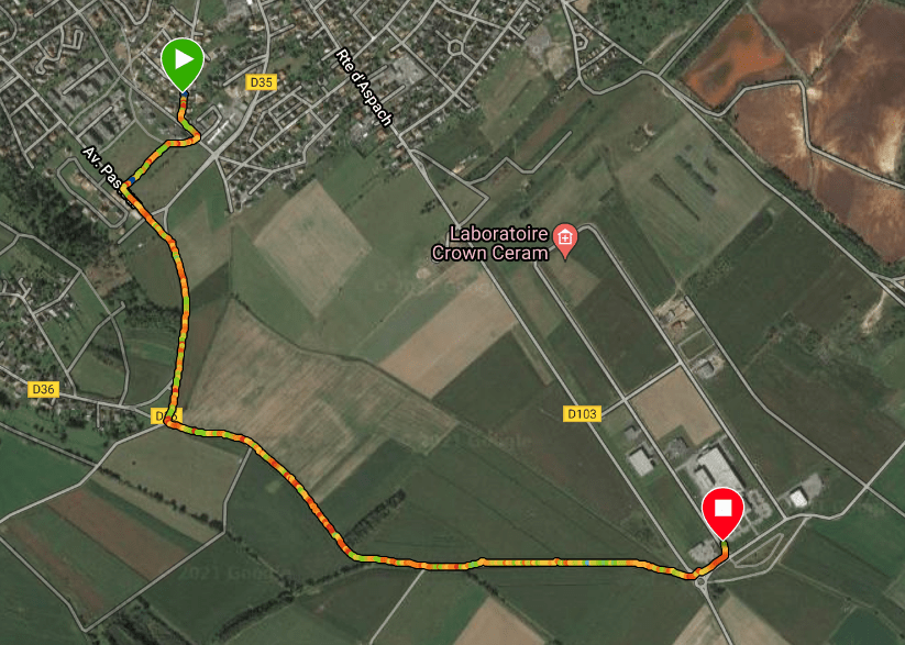 En courant, j’ai l’œil rivé sur la Garmin. C’est presque un directeur de conscience (de confiance?). J’ai un cardio de malade pour commencer, des 185 puls physiologiquement impossible. C’est la montre poignet qui s’affole et ça me trouble. Même en réduisant l’allure, ça ne baisse pas. C’est après 1.7 km que la ceinture thoracique prend le relais quand je suis chaud, elle capte la pulsation, (oui je sais il faut mouiller la ceinture avant de partir) et tout redevient normal. Je peux reprendre mon allure de croisière.