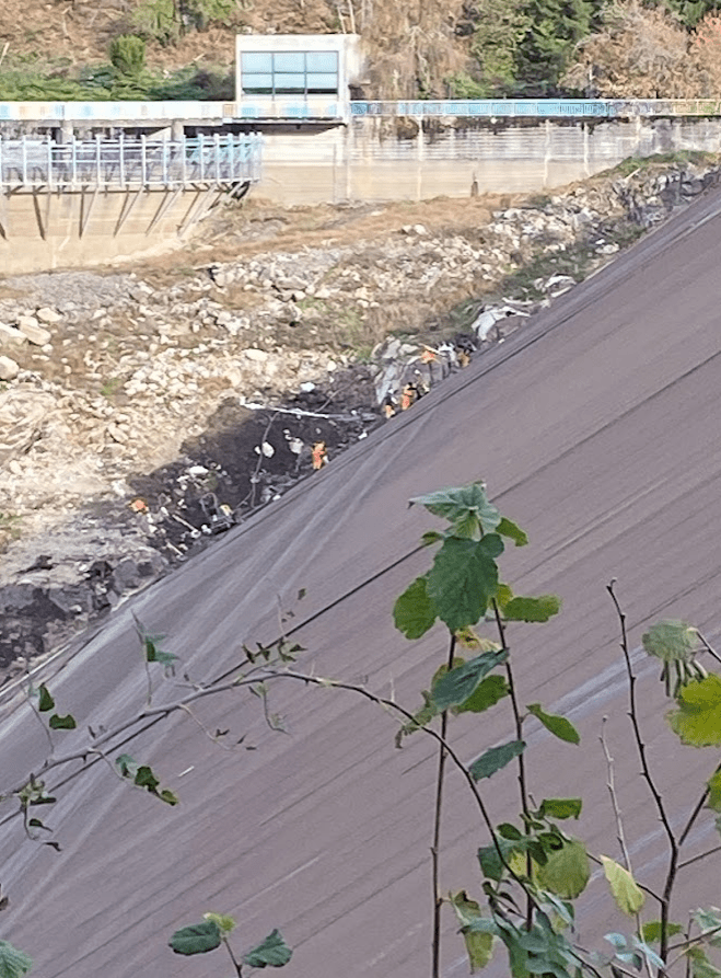 Alors que les travaux de consolidation du barrage de Kruth se poursuivent, une barque sombre.
