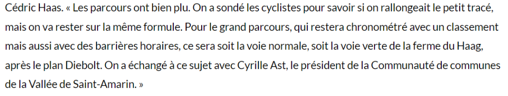 déclaration de Cédric Haas, l’organisateur du Gran Fondo, dans les DNA