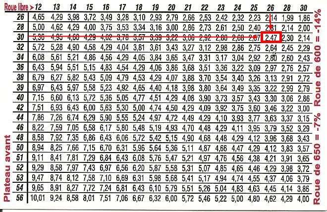 Oui, c’est vrai un 50×19 équivaut à un 42×16 au point de vue développement.